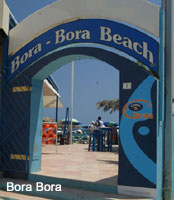 かつては特にこれと言った観光の目玉がなかったPlaya den Bossaであるが、Ibiza名物のクラブSpaceがこの地に誕生して以来、その本拠地として一気に知名度がアップ。最近では海沿いに次々と新しいバーがオープンし、クラブに遊びにきたお客さんがチルアウトする場所としては勿論、ダンスフロアーで盛り上がりすぎて倒れてしまった負傷者を手当てする場所としても大いに賑わいを見せている。あまり特徴のないお店がほとんどの中、Spaceのエントランスから数百メートル離れたところに位置するBora Boraは、リラックスしながらカクテルをすすり、日焼けを楽しみには持って来いの場所として高い人気を誇っている。美しいビーチにファンキーハウスとエレクトロ。ここでは早い時間から踊り来るっている人を見かける事もあるだろう。