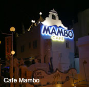 その両側に立つ2つの建物は、Cafe Del Marの大きな成功の恩恵を受けながらも、ちょっと違ったコンセプトとよりコマーシャルな方向性を掲げながら営業している店である。一つはCafe Mambo。日没まではCafe Del Marと同様にアンビエント系の音を流しているが、日没の後は次第にハードな曲もプレイして行くこの店は、島で行われているメジャーパーティーの殆どからプレ・クラブとしての指定を受けている事でも知られている。そしてもう一方がSavannah。こちらはCafe Mamboと同じオーナーが経営するバー/レストランであり、サンセットを見ながら美味しい食事を堪能出来るというのを売り物にしている。さて、この3つのバーから岬をぐるっと回ったところにあるのが、その美味しい料理が島中で評判を呼んでいる小さなレストラン、Kasbahである。最近ではあのJudge Julesがこの店を買った事でも話題となり、最近では日曜日に行われている彼のパーティー、Judgement Sundayのプレ・クラブとしても利用されている。ここもまた夕日を眺めるのに最適な場所であり、食事に関して言うとSavannahで出されるものよりもずっと美味しいとの評判だ。 |