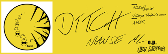 ditch : シャープなのは低音の重なりが減ったからそう聞こえるのかもしれない。 もう一つ付け加えると、自分らしさ、自分らしい音の鳴りっていうのはそんなに自分では把握してなくて、ただ、op.disc の "hub2009" のコンピのトラックと Snork からの 'Manse Al EP' の A1 は制作した時期がわりと近いので、リリースの時系列順で追って聴くと、結果としてこの2つは近い音にはなっていると思います。それが"らしさ"にもつながってるのかもしれない。
