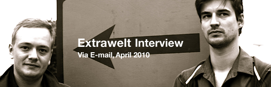 Extrawelt : 4月から6月にかけて、12inch を3枚リリース予定だよ。一つはスコットランドのレーベル Darkroom Dubs から 'Neuland EP' というタイトルで、他には Oliver Huntman のレーベル Ideal Audio と Traum Schallplatten からもね。あとは、一年中ツアーをしているからしばらくかかってしまうかもしれないけど、次のアルバムの製作に取り掛かり始めたところだよ。