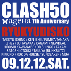 これまでも国内外を問わず、パーティー規模にふさわしい数々の大物達を招聘してきた CLASH だが、ageHa の7周年アニバーサリーと併せての記念すべき50回目、ダブル・アニバーサリーとなる今回は、日本のテクノ界の総力を結集した "純国産" ラインナップ、新旧併せた堂々たるメンツが勢ぞろいした。自身のユニット・電気グルーヴが20周年を迎えた石野卓球、先月の CLASH にてデビュー15周年記念でスペシャルなLIVE SETとDJを披露した Ken Ishii、世界直結型アンダーグラウンドのカリスマ Fumiya Tanaka らをはじめ、スペシャルゲストライブとして、ニューアルバム "Pleasure" を掲げ現在全国ツアー中の RYUKYUDISKO の参戦も決定。今の国内テクノシーンを総括するにふさわしい豪華な宴となりそうだ。