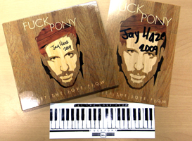 Jay Haze の ソロプロジェクト Fuckpony のニューアルバム "Let the Love Flow" CD本体と、ポストカード・ステッカーの3点セットを