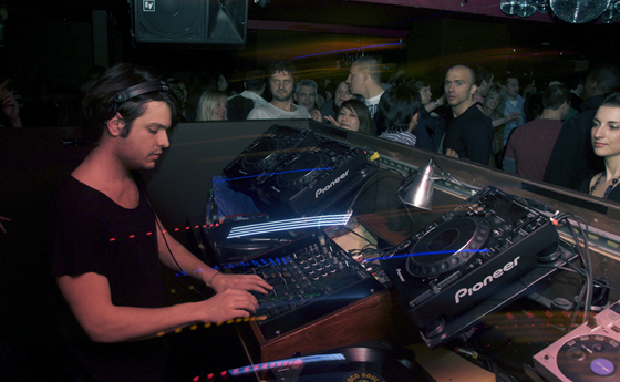 そんな DJ PIERRE と対照的なプレイを聴かせてくれたのがギリシア出身ベルリン在住の ARGY。 若手プロデューサーの中でも抜群の楽曲センスを誇る実力派で、2、3年前まではロンドンに住んでいたらしい。 彼は2時間のセットの為に恐ろしい量のレコードをベルリンから持ってきてくれた。 スペイシーでディープなテックハウスから、ハウスクラシックまで幅広く選曲。レコードを一枚、一枚と丁寧にミックス、彼の楽曲からも感じられる美しい世界観を演出いていく。その抜群のミックススキルにはただただ驚くばかりで、レコードを楽器のように奏でて曲が変わる度にフロアは盛り上がり加速する。 音楽に対する真摯な気持ちと幅広い知識がないとできない技だ。自身の曲をレコードでプロモーションしているところも憎い。 ひたすら踊りながら ARGY の手元を見て感心していると、EAST VILLAGE のダイレクターの一人がテキーラとショットグラスを持ってDJブース横に現れた。想像もしてなかったタイミングでテーキラ祭りがスタート。筆者はテキーラよりイエガを好んでショットするタイプなのでテキーラは得意ではないのだが、渡されたショットを下に置くほど無礼者でもないので、ありがたくテキーラを数杯いただく。 かなり酔いがまわり始めた3時30分に HOLIC レジデントDJの TOMOKI TAMURA がスタート。 | ![]() |