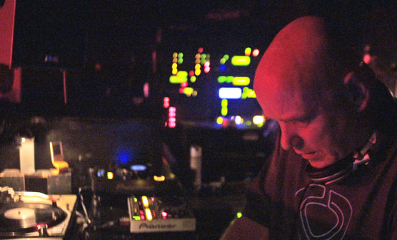 | 80年代後半のセカンド・サマー・オブ・ラブの勃興以来、常にダンス・シーンの頂点に君臨してきたThe Orb。アシッド・ハウス、テクノ、ダブ、レゲエ、アンビエント、プレグレッシヴ・ロック、ヒップホップなどの様々なサウンドを巧妙に融合した独自のサウンドで、シーンの中で一際異彩を放つ存在としてレスペクトを受けて続けてきた。そんなThe Orbの中心人物、Alex Paterson博士が約1年半ぶりに来日。Metamorphoseへの出演を翌日に控えた8月27日(金)、西麻布のSpace Lab YellowでDJセットを披露してくれた。セットのスタートは、バウンシーなビートと無機質な雰囲気で構成されたテック・ハウスやダブ系のトラックが中心で、フロアの温度感も徐々に上昇。割とハメていく選曲にいい感じの緊張感が漂い始める。このまま4つ打ちで上がっていくのか、と思って流れに身を任せていると、そこは流石、自由度の高い音楽性で知られるAlex。いつの間にか、印象的なバレアリック・チューンやヒップホップ・クラッシックを中心としたダウンビートな展開へと流れ込み、クラウド達の意表をつく選曲を繰り広げていく。そして再び硬質なテクノトラックへと戻った後は徐々にボルテージを上げ、最後はThe Orbの楽曲を含めたレイブ系アンセムへと突入。長いキャリアに裏打ちされた、懐の深さをまざまざと実感させてくれた。 | |