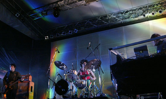 SOLARステージでは、ツインドラムによる力強いビートにのせた、生のトランス・ロック・ミュージックを聴かせてくれるROVOのライヴが行なわれ、照明やヴィジュアルが彼らのエクスペリメンタルな世界をさらに際立たせていた。リズムマシーンやビートマシーンを操って、リアルタイムにたたき出す、ブレイクビ―ツという枠を超えた独自の音楽観を披露してくれたHIFANAも、映像と音を交えたエンターテイニングなギグをみせてくれた。LUNAR STAGEでは、THOMAS KROME&JASPER DAHLBACKが後に登場するGREEN VELVETにリスペクトを示してか、「La La Land」のリミックスをプレイ。THOMAS自身がリミックスを手掛けたヒット・チューンAdam Beyerの「Biches from hell」をプレイするなど、ハード・テクノ〜ミニマル・テクノでテクノファンをうならせていた。続いて登場したDJ SNEAKの、どファンキーでクールな音と映像の世界に浸っていると、SOLARステージにはMOUSE ON MARSが登場。アグレッシヴなまでの電子音が印象的な楽曲「WIPE THAT SOUND」をはじめとするニューアルバム「RADICAL CONNECTOR」からの楽曲や、日本のファンおなじみ、アルバム「Idiology」からのヒット・チューンもプレイ。彼ららしい個性的なライヴ演出、そして誠実でありながらも時に皮肉っぽいMCにも唯一無二なモンスター・バンドのカラーが強く現れていた。 | |