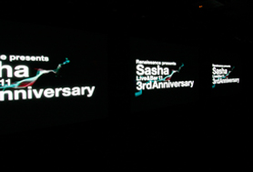 2009年1月の登場以来、2度目の大阪登場となる Sasha が心斎橋 Onzieme の3周年パーティーで来阪した。 前回と同じく平日開催となったが、孤高の天才であり、ダンスミュージックシーンを牽引し続ける希有なスーパースターを一目見ようと多くの人が集まった。当日はアニバーサリーウィークということで、エントランスには色鮮やかな華々が所狭しと並び、いつもにも増してゴージャスな雰囲気を醸し出していた。 また Reneissance のフラッグや "R" のロゴがフロアの至る所にデコレートされており、このパーティーにかけるハコ側の熱い思いが伝わってくる。 | |