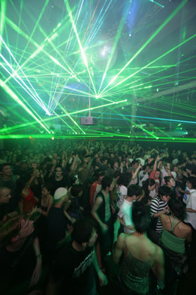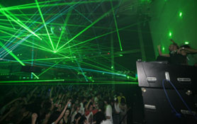 前日の Pascal F.E.O.S.そして Frank Lorber によるショーに続き、イベントの第2日目を飾るのは、Cocoon 帝国のドン Sven Väth による 7hours セット。網目のように空間を覆うレーザーと、ミラー・ボール、そしてスモークによってつくり出されるその幻想的な空間に対して、巨匠 Sven は一体どのようなセットを披露してくれるのか。ダンス・ミュージック・ファンならば誰もが気になるイベント内容であり、筆者の経験からして Sven のプレイするクラブが満員状態でなかったことは一度もないため、今回も早めに会場入りすることに。 フロアに足を踏み入れてすぐ、昨日とはレーザーの演出の違いに気付く。"Frankfurt Moonlight" というサブ・タイトルとマッチした、昨日より少しダークなライティングによって、ステージ上でプレイする Sven の笑顔が浮かび上がっていた。早めに会場入りしたものの、フロアは既に満員状態。しばしフロア後方からそのアーティスティックなレーザーによる演出を眺めることにした。 | |