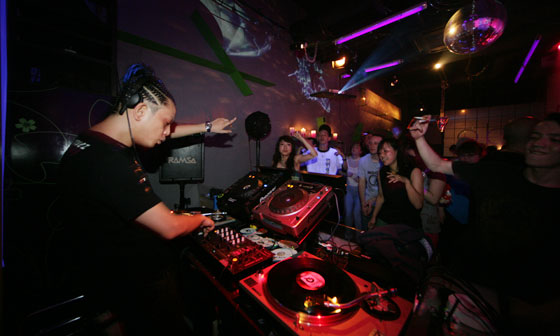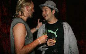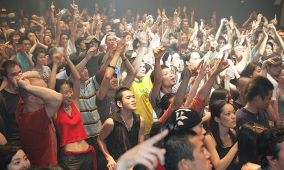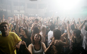 セット前半の Sven は、ダークなエレクトロ系トラックとシンプルなエレクトロ・トラックを交互に行き来しながら、フロアの状態を伺っている様子。最近リリースされた自身のミックスCD "Sound of the fifth season"にも収録された Roman Flugel による最近のクラブ・アンセム "Geht's Noch?"など、質のいいトラックはプレイしているのだが、筆者としてはいまいち音に入り込めず、しばらく次の展開を待つことに。だが、フロアを訪れるクラウドの数は時間を追うごとに増えていき、フロア後方でさえもスペースを確保することがままならなくなったので、勇気を出してフロア前方に移動。すると、その瞬間に Fischerspooner による"Just Let Go"がドロップされる。最近の Sven テイストが前面に出された選曲にフロアのテンションもかなり上昇するのだが、それを受けて Sven のテンションも急上昇してしまったのか、その後はハードでバンギングなテクノ・トラックがフロアを支配することに。ここで、筆者はあまりの熱気に耐えられず 1Fへ移動。レーザーとデコレーションによって演出された部屋ではちょうど DJ AKi によるセットが行われているところだった。歯切れの良いビートが気持ちのいいドラムン・ベース・セットと共に少し気分をリフレッシュさせると、再びフロアへと向かう。そこでは続いてハイ・テンションな怒涛のテクノ・セットが行われていたのだが、しばらくすると、先日もプレイされた Guy Gerber による"Stoppage Time"の印象的なイントロが聴こえて来る。筆者も個人的に大好きなトラックではあるのだが、ここまで激しいトラックに続いてプレイされると、楽曲の勢いが薄れてしまうようで、少々もったいない感じがしてしまったことは否定できない。しかし、ここから終盤に向かってはダークでグルーヴ感のあるエレクトロ・トラックが再びドロップされることに。激しい音の嵐の後に現れた虹の様に光るレーザーの下で、しばし官能的で美しい音の空間に包まれていると、マイクを持ったSven自身によってセットの終わりが告げられる。7時間にも及ぶ長い旅、そして二日間にわたる豪華な演出に終止符を告げるラスト・ソングとして選ばれたのは Hugg&Pepp による"Snabeln"。その印象深い電子音のメロディーと浮遊感のあるシンセ音はフロアに大きく響き渡り、名残惜しさを残しながらも消えていくのだった。 | |