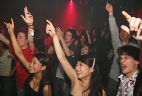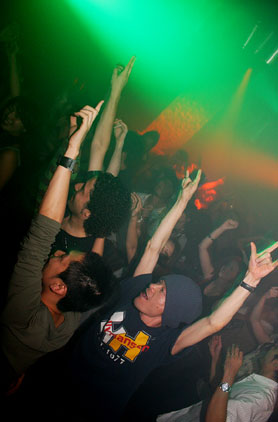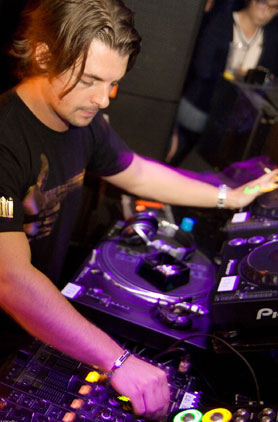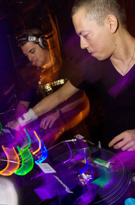 華やかなプレイでフロアーをウォームアップさせた Mitomi Tokoto に続き、2時に Axwell がブースに登場。’07年 Ibiza で最も注目された旬のプロデューサーに相応しく、まるで Ibiza を彷彿とさせるようなエキサイティングなパーティーチューンを次々とスピン。CDJ3台とエフェクターを自由自在に操りながら、'I Found U'、'Feel The Vibe'、'It's True' 等の彼自身のスマッシュヒッツに加え、Audion 'Mouth to Mouth' や Duft Punk 'Harder, Better, Faster, Stronger'、そして Samba De Janeiro を大胆にサンプリングした DJ Nick の 'Summer Sumba' などインパクトのあるトラックを随所に織り交ぜて行くというスタイルが印象的だった。 4時半を過ぎた頃に一旦 Mitomi Tokoto にバトンタッチしたものの、まだまだ踊り足りない様子のオーディエンスに刺激されたのか、またブースに戻り Tokoto との Back 2 Back がスタート。最後は Axwell がソロプレイを再び披露するという、アニバーサリー・パーティーに相応しい豪華な一夜となった。今後大阪にもこのようなリアルタイムなヨーロピアン・サウンドが広がって行くことに是非とも期待したい。 |