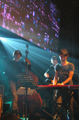 POPKOMM Night Nitzer Ebb, Black Strobe, Ladytron, Trentmoller Live in concert, Paul van Dyk, Felix da Housecat, Henrik Schwarz, Joakim, HotChip など、ジャンルを超え様々なアーティストが参加している他、Bitch Control, Poker Flats, M_nus, Get physical, Ninja Tune, Gigolo などのレーベルナイトも各ベニューで開催されていた。 Water Gate で行われた Get physical のレーベルナイトではメインフロアに DJ T, Thomas Schumacher, ラウンジステージではこの夏、Hustler の大ヒットで注目の Samim がラインナップ。まさにベルリンの旬の音。平日の水曜日といえ、会場には長蛇の列ができ入場制限されていた。 Tape で行われた Soner Kollectiv 10th Anniversary Party では Sonar いちおしのアーティストのライブ。 Wahoo のしっとりとしたボーカルに心地よく身を委ねた後は、Dixon も参加する Christian Prommer's Drum Lesson のライブ。バンド名が由来してなのか、クリック音が曲間に入るのが面白い。 Sonar Kollectiv Orchestra はドラムとパーカッション×2、ピアノ、ウッドベースで編成されたジャズジャムバンド。 Derrick May の "Monday anthem", Isolee "Beau Mot Plage", KraftWork "Trance Europe Express" などのカバーも登場し、次にどの曲が来るだろう、と期待に包まれる。 "生" でしか見られないジャム感あふれるライブパフォーマンスに会場は歓声に包まれ、魂が踊った。 セカンドフロアでは I:Cube, Jazzanova, Dixon, Roland Apfel などのショーが行われこちらも上質のサウンド。 また同じ週末、Popkomm のプログラムではないが、Panorama の Outhouse での Innner Visions のアフターパーティも開催された。 Dixon, Ame, の Inner Visons に、フィンランドから Cosmic City の Lil’ Tony を迎えてのセッションは、ベルリンに新しいシーンの始まりを予感させた。 東西ヨーロッパの十字路に位置するベルリンの街は、まさに音楽シーンの交差点。音楽シーンの要であることは間違いないようだ。 |