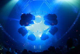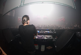 最高のブレイクポイントを演出し、大喜びのフロアに続いて投入したのはハウスの大名曲、 Jaydee の 'Plastic Dreams' のリミックス、少しずつ差し込まれてくる例のオルガンと鐘の印象的なメロディに、同曲がミックスされていっていることにいち早く気づいた観客から徐々に歓声が上がってゆき、その歓声が最高潮に達した瞬間に、独特なパーカッションを含んだあの印象的なビートが差し込まれ、更なる盛り上がりへ、この辺の構成の上手さには以前 Higher-Frequency のインタビューに答え、腕を見せびらかせるより、いいパーティーをクリエイトするということが大事と語っていた彼のパーティーに対する姿勢が感じられた。その後も勢いを停滞させることなく、テンションをキープしてゆき、ところどころで Eurythmics、'Sweet Dreams' の自身のミックスや Under World、 'Born Slippy' のリミックスなどある意味ベタとも言える楽曲をも躊躇なくドロップし、きっちり盛り上げてゆくさまはさすがといえる内容であった。どんな楽曲もいいと思えばプレイするといっていた彼であったが、それをプレイするに当たって、前後の楽曲から嫌味なく自然な流れでつないでゆくあたりに彼のスキルを感じつつ、本当の意味でどんな楽曲もボーダレスにプレイし、パーティーをクリエイトすることに徹するあたりにDJとしての彼の魅力を感じつつ、まだまだ盛り上がるフロアを後にした筆者であった。 |