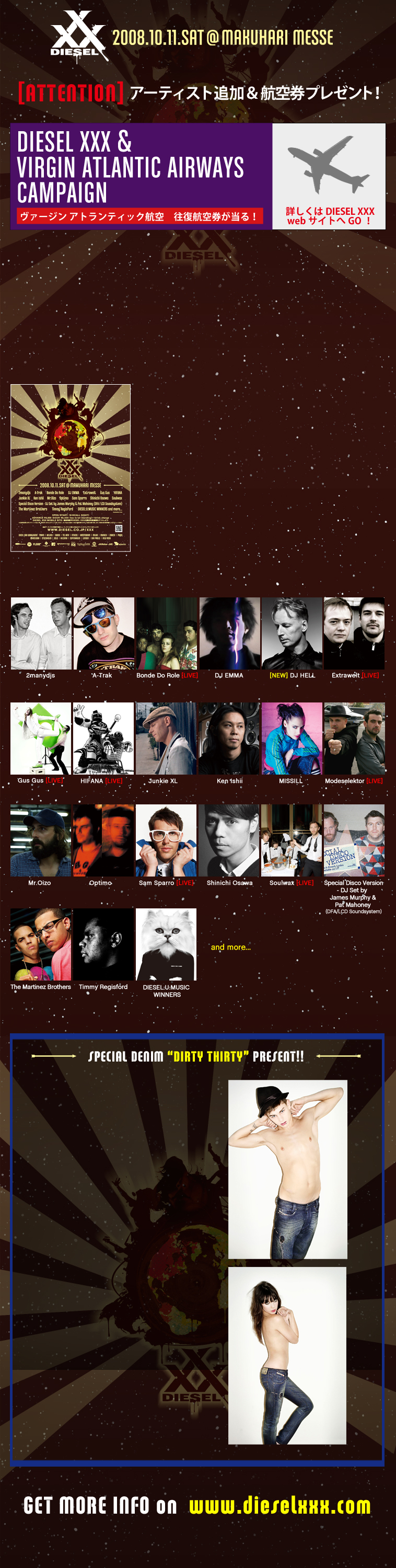 さらに今回新たに "DIESEL XXX"イベント中にヴァージン アトランティック航空アッパークラス、