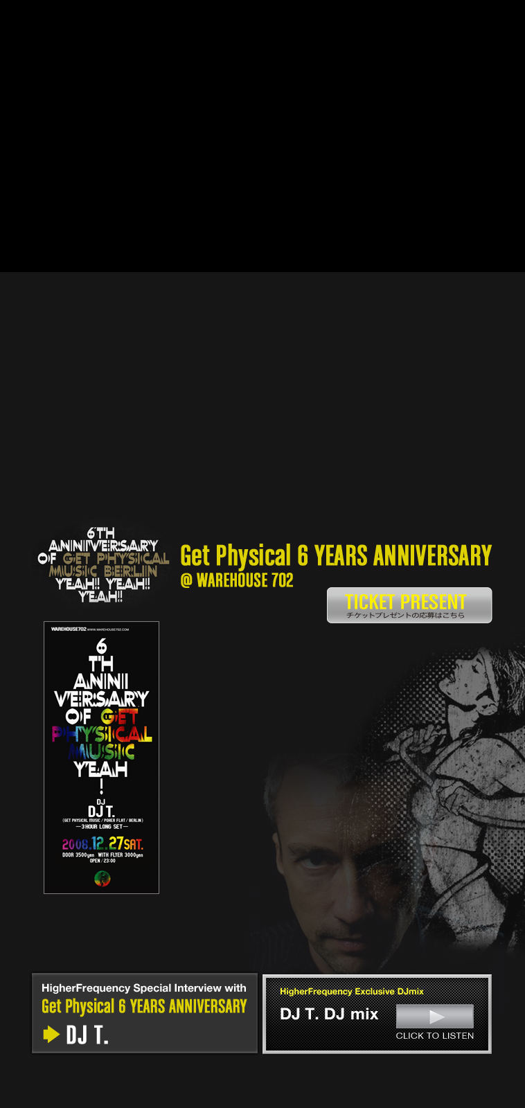 2006年度にはシーン発祥の地ベルリンにて最も威厳ある 「レーベル・オブ・ザ・イヤー」 に輝くなど、多くのダンス・ミュージック・ファンから熱い信頼を受けてきた。 昨年 UNIT で開催された 「5 years Anniversary」 では約1000人の動員を記録し、ここ日本でも改めて同レーベルへの注目度の高さがうかがわれた。 そして今回の 「6 years Anniversary」 に登場するのは、ドイツの権威あるクラブ・ミュージック誌 ”Groove Magazine” の創刊やドイツの歴史的クラブ 「the Monza Club」 のオープンに関わり、’80年代よりベルリンのダンス・ミュージック・シーンの隆盛に力を注ぎ多くのDJ/ クラブ関係者から多大なリスペクトを集めているジャーマン・テック・ハウスのカリスマ、DJ T.。ハウスを軸にディスコ、ファンク、デトロイトなど膨大な音楽知識と幅広いバックグランドを持つ彼が、