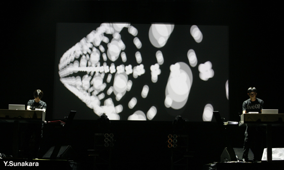 そこから休憩を挟み、次のステージは Tha Blue Harb。気がつけば時計は午前2時を指そうとしていた。思い起こせば食事をとる時間も惜しんで様々なライブに没頭してきたので体力も限界に近づいていたが、彼等のライブも本当に目が離せなかった。ライブ終盤、聞き覚えのあるピアノトラックが聞こえてきてはっとした。その曲の正体は 'Ill-beatnik' という曲で、youtubeで再生回数30万回以上という記録を叩き出しながらも、普段のライブでは殆ど聞くことが出来ず、まさしく伝説の曲と崇められているもの。情緒的なピアノトラックに Boss がストレートなリリックを乗せ、皆食い入る様にして聞き入っていた。この日 Boss が解き放った言葉達は今も胸の中に刻まれている。 夜も更けて来た頃、この日のトリを飾ってくれたのは先日アルバムがリリースされ、長年の沈黙から待望の復活を遂げた Y.Sunahara。透明感がある優しいその音はとても心地良く、アルバム "Love Beat" のライブエディットが流れ出した瞬間は思わず興奮してしまった。映像にもかなり力が入っており、まるでインスタレーションを見に来ているような気分を味わった。細部まで狂い なく計算された、繊細で細やかな音がスピーカーから溢れ出し、オーディエンスたちを包んでいた。 そして一日目が終了。 どのステージも充実したラインナップでこの日ほど自分の体がもう一体欲しいと思ったことはない。冷め切らぬ高揚感を胸に岐路へついた。 | |