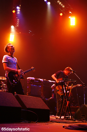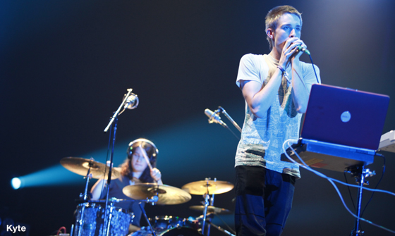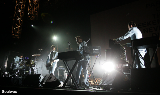 開場に到着し、まず一番最初に向かったのはソニックステージ。ステージに立っていたのはUKからの新星4人組バンド Kyte。美しく情緒的で澄んだそのメロディーは、真夏の幕張に吹いた涼風の如くオーディエンス達の頬をなでた。続いてステージに現れたのは 65daysofstatic。同じくUKから来たインストポストロックバンドだ。心地よいドラムに絡むピアノ、そして轟音ギター。ブレイクビーツの要素も含むそのサウンドはオーディエンスの肩を軽快に揺らす。 ここでマウンテンステージに移動し、フランスはパリから来日した Phonix のライブへ。爽やかでポップなサウンド、時折感じさせるメランコリックなメロディー、そしてスマートな出で立ちでひと時もステージから目が離せなかった。 | |
