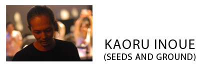 DJ/プロデューサー。高校時代より20代前半までパンク~ロック・バンドでのギタリスト経験を経て、Acid Jazzの洗礼からDJカルチャーに没入する。同時期に民俗~辺境音楽探究に目覚め、バリ島やジャワ島へ頻繁に旅立つ。都内の小箱クラブの平日レギュラーを務めながら、94年より"chari chari"名義で音楽制作をスタート、UKの"PUSSYFOOT"からリリースを重ねる。"真空管"、"MIX"、"BLUE"、"WEB"などの都内クラブで活動を続け、徐々にハウス・ミュージックに傾倒していく中、99年"chari chari"として、あらゆる音楽体験を昇華した1stアルバム「spring to summer」をリリース。以降、リリース作品、リミックスは多岐に渡る。主なリリースは"chari chari"「in time」、"Kaoru Inoue"「The Dancer」、「Slow Motion」。現在DJの他、小島'DSK'大介とのアコースティック・ミニマル・ギター・デュオ"AURORA"などプレイヤーとしても活動中。レーベル"SEEDS AND GROUND"主宰。7年を超えるレギュラー・パーティー"groundrhythm" @ AIR、岩城健太郎との共催"FLOATRIBE" @ UNITを拠点に活躍中。