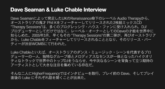 パーティーレポート : The Therapy Sessions feat. Dave Seaman & Luke Chable @ WOMB (2005/03/20)