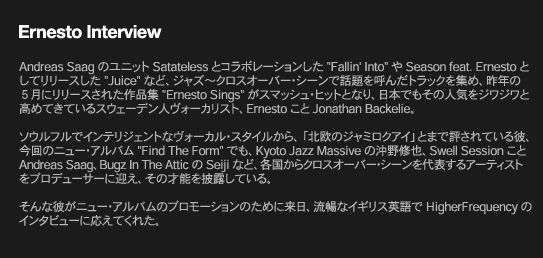 リリース情報 : Ernesto / Find the Form (2006/04/02) リリース情報 : Ernesto / Ernesto Sings (2005/05/18)