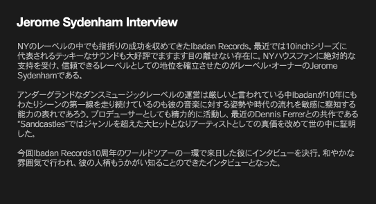リリース情報 : Jerome Sydenham / Explosive Hi-fidelity (2005/09/09) イベント情報 : Jerome Sydenham "Explosive Hi-fidelity" Release Tour @ Yellow (2005/09/18)