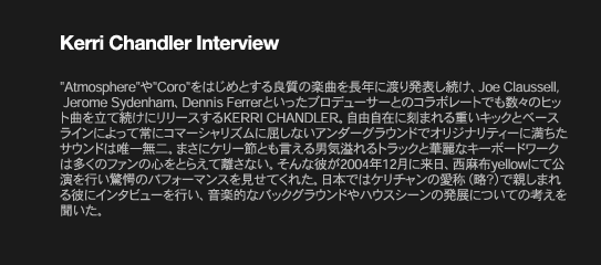 KING STREET SOUND presents KERRI CHANDLER @ YELLOW, パーティーレポート (2004/12/04)