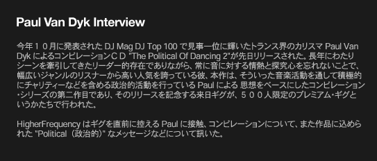 パーティーレポート : Paul Van Dyk TPOD2 Tour Extra Show @ UNIT (2005/12/08) リリース情報 : Paul Van Dyk / Politics Of Dancing Vol.2 (2005/09/19)