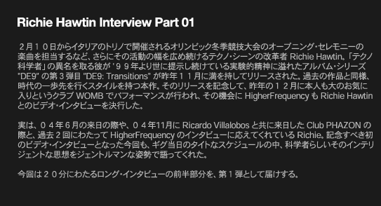 インタビュー : Richie Hawtin Interview in Tokyo (2004/06/26)